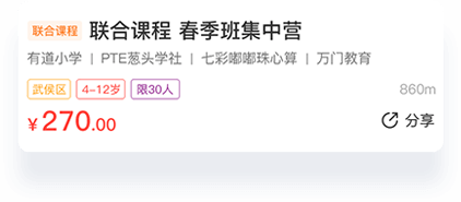 通过校区自有课程和联合其他校区课程,使课程种类更多,更全面, 让用户有更多的选择范围的同时,提升校区的品牌影响力,用户在 分享购买过程中,带动周边共同销售。